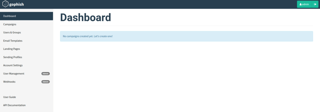 Ya instalado podremos leer la guia de usuario y continuar ya que es bastante sencillo!! https://docs.getgophish.com/user-guide/
