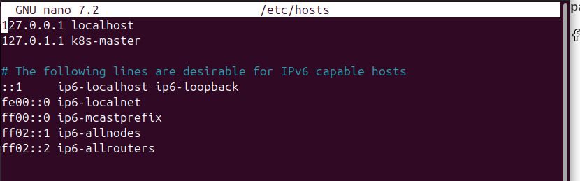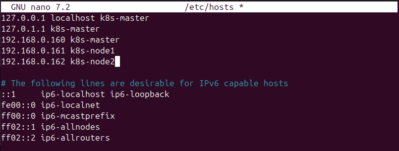 Esta accion la tenemos que repetir en los otros dispositivos donde vamos a instalar el cluter siempre respetando la configuracion propia, esto quiere decir, que en nodo 2 tiene un localhost y debe responder a nodo 2 y no a k8s-master sino estmaos confundiendo las cosas.