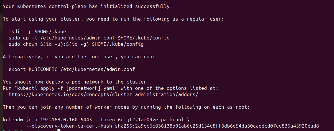 sudo kubeadm init --pod-network-cidr=192.168.0.0/24