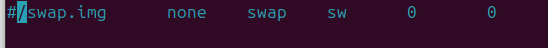 Este comando funciona pero al reinciar no da bola y no descubri por que…. en fin, editaremos el archivo: /etc/fstab y a la linea que dice swap le agregamos # al principio que es para comentar.