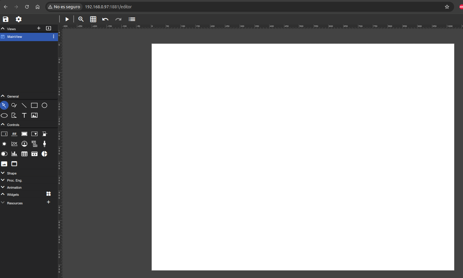 http://ipdelservidor:1881/editor, permite diseñar visualizaciones mediante una interfaz gráfica de arrastrar y soltar (WYSIWYG). - Panel de visualización: Accesible en
