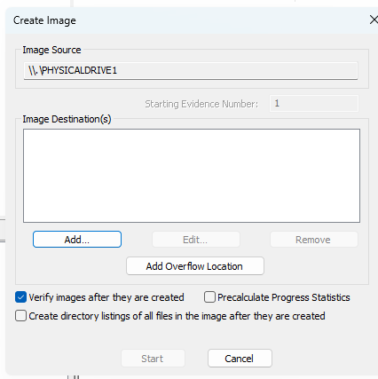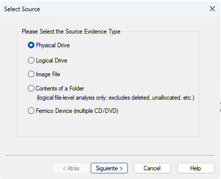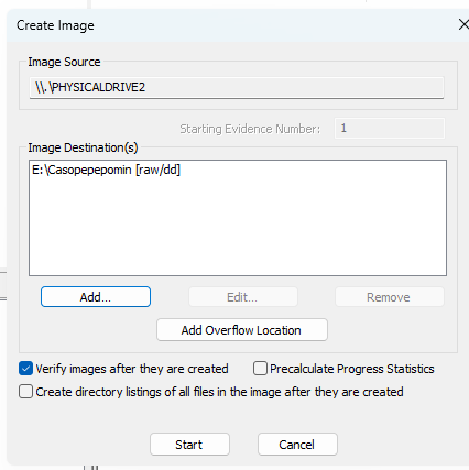 Como podemos ver en la imagen anterior ya tengo el disco del «cliente» conectado y es al cual le voy a hacer una copia exacta con ftk imager.