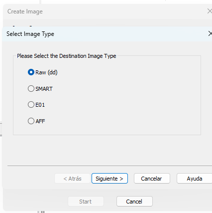 Vamos a poner donde queremos alojar nuestra imagen y si bien hay muchos formatos disponibles usar DD nos dará compatibilidad con otro monton de herramientas forenses sobre todo opensource: