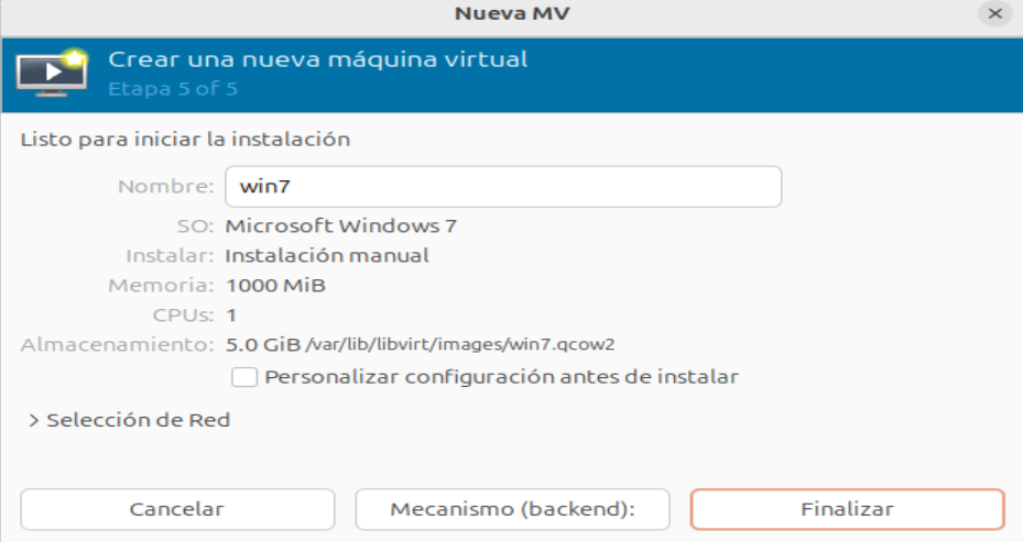 Luego podemos seleccionar alguna red particular y al darle finalizar termina la configuración y podemos instalar el sistema operativo que queramos en este caso puse win7 para que vean algo pero podria ser cualquier cosa.