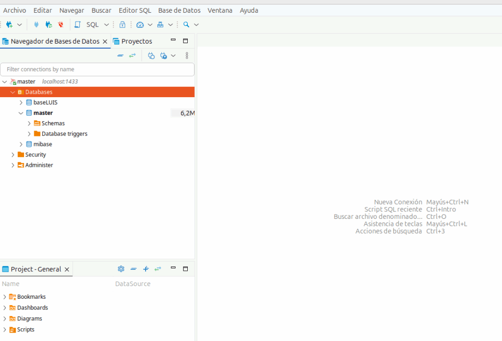 Para la demostración yo lo hice en mi maquina con ubuntu 24.04 y mi administrador de bases de datos yo utilizo https://dbeaver.io/ ya que es una bestia! me deja administrar microsoft sql, mysql, mariadb, oracle…. NO HAY CON QUE DARLE!