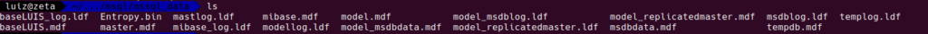 COmo pueden ver con el administrador de bases de datos cree dos bases (baseLUIS y mibase) y si en una terminal vamos hacia el volumen donde estan las bases de datos que segun nuestro docker-compose.yml se llama mssql_data veremos los archivos que «son» nuestras bases creadas y que tenemos dando vuelta en el servidor.