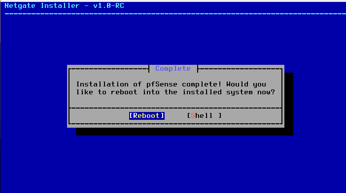 Luego va a pedir que reiniciemos pero tenemos que estar atentos a reiniciar y apagar la maquina virtual ya que le tenemos que quitar la iso de netgate pfsense para que no entre en un bucle de instalación: