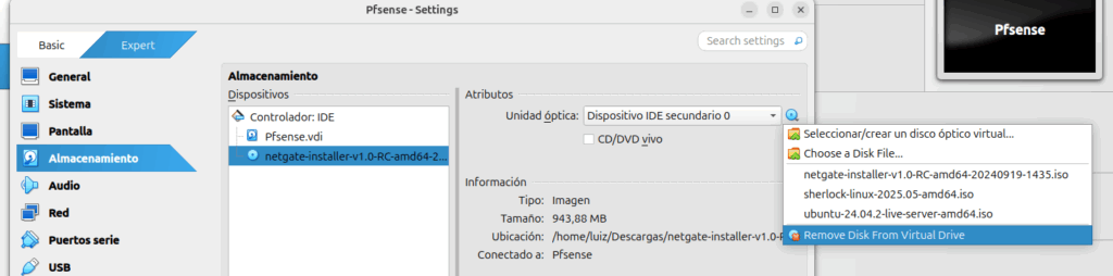 Tendrán que ir a virtualbox, almacenamiento, elegirlo y removerlo: