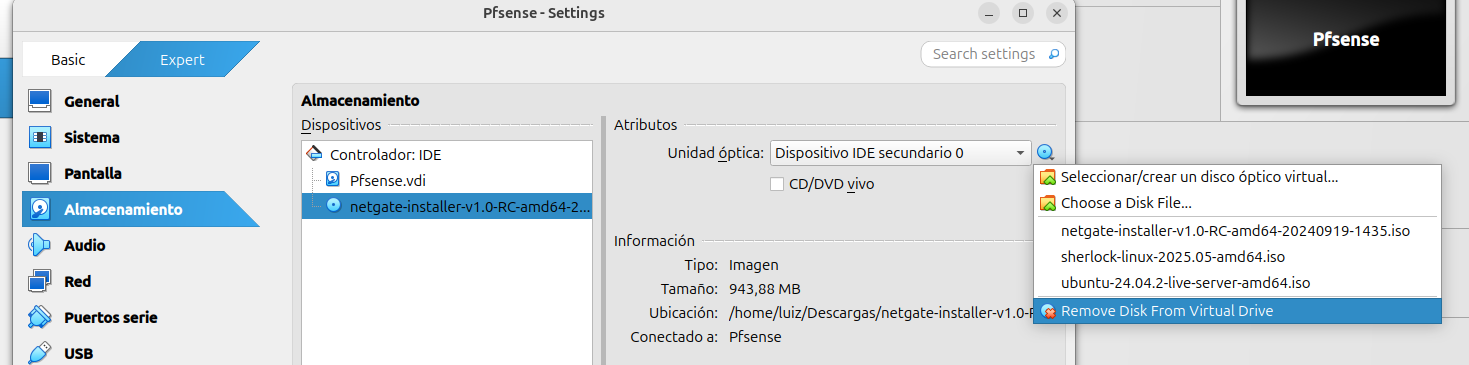 Tendrán que ir a virtualbox, almacenamiento, elegirlo y removerlo: