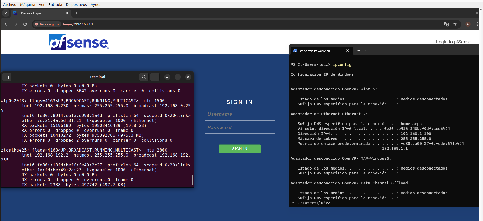 - Desde la maquina virtual entramos por el navegador a la 192.168.1.1 que es nuestro Pfsense