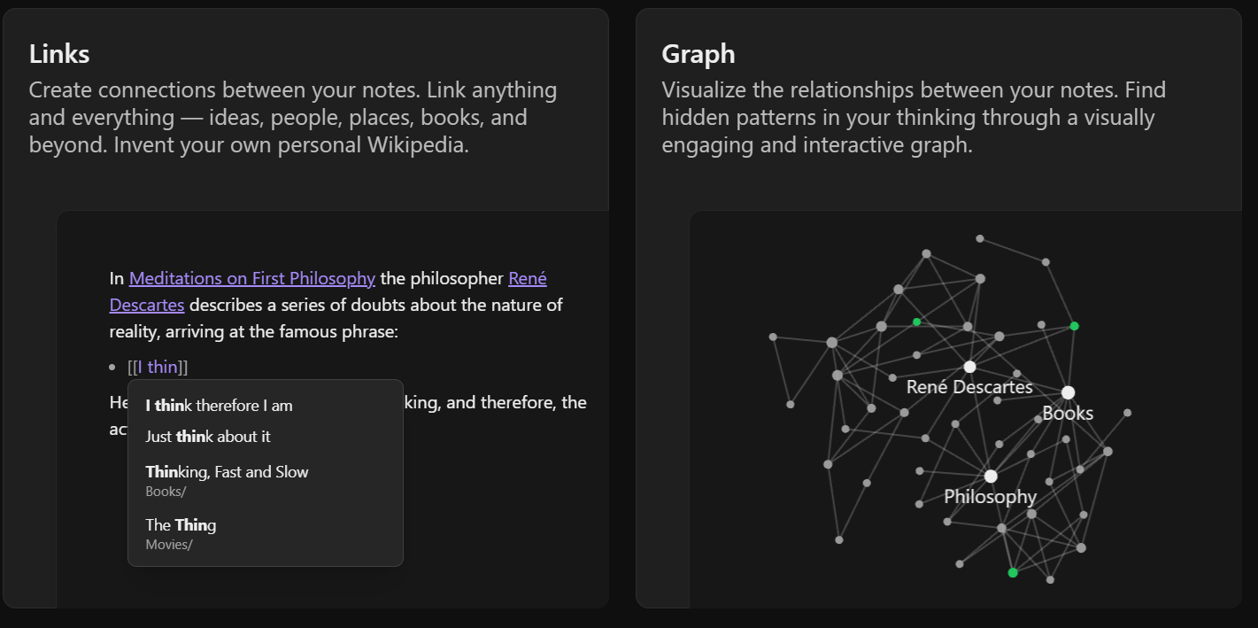 Asi se ve la primera vez! ahora si te gusto y te parece util a meterle! A mi me encanta por que sobre todo trabaja con #markdown que es un lenguaje de marcado ligero que permite formatear texto de manera sencilla utilizando una sintaxis simple, legible y compatible con otras herramientas. Además toda tu boveda se puede transformar en un gran pdf.