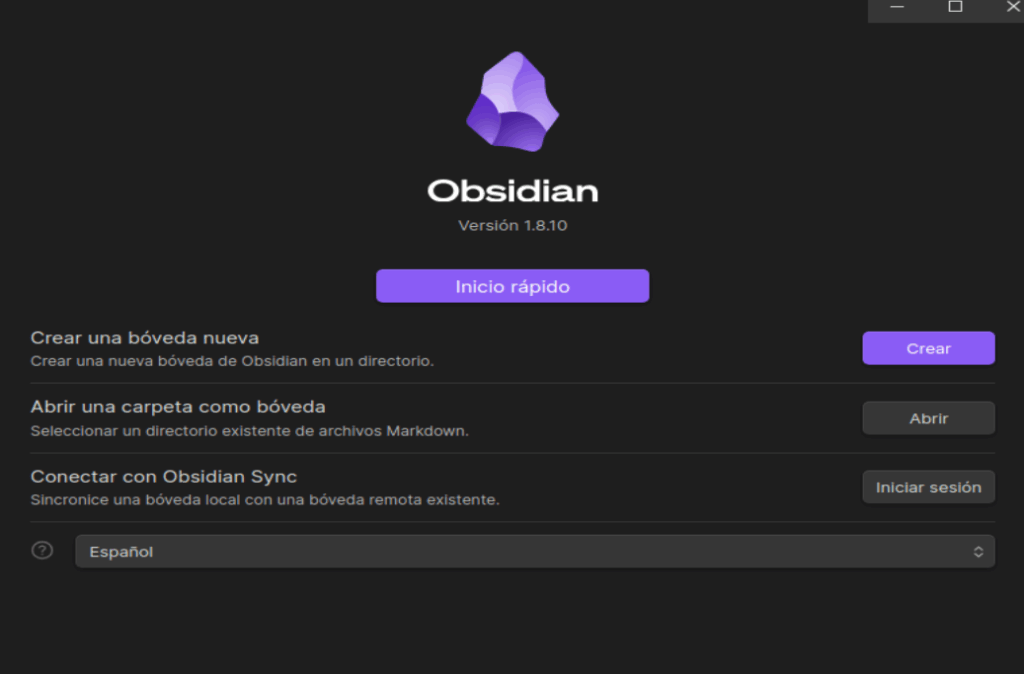 Obsidian es una aplicación para tomar notas que permite conectar y organizar información de forma local, utilizando archivos Markdown. Es una herramienta muy útil para la gestión personal del conocimiento, permitiendo vincular notas, buscar contenido rápidamente y crear mapas visuales