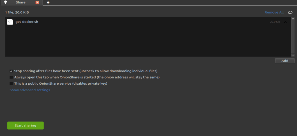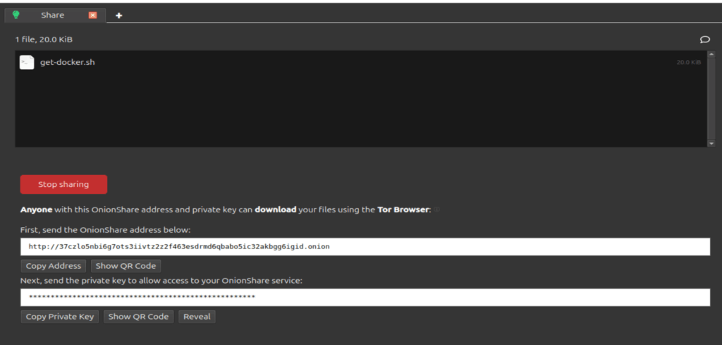 Pero sin irnos del ilo…. sobre la misma red tor podemos compartir archivos de forma segura y privada gracias a Onion Share: