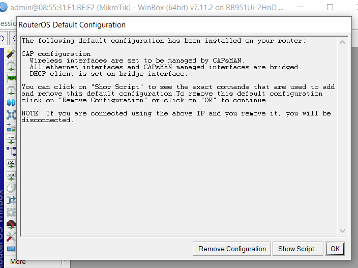 Si reseteamos a fabrica correctamente, cuando abramos winbox vamos a ver: