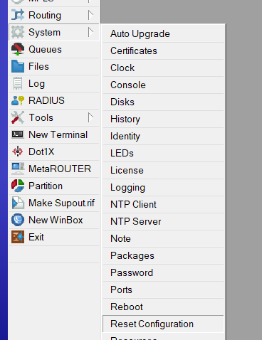 Vamos a ir a System -> Reset Configuration