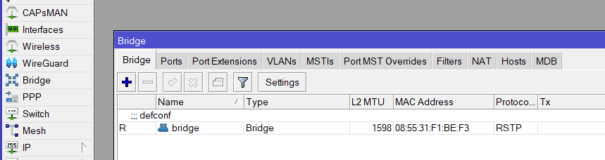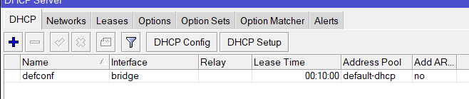 Si sr! esta funcionando en la interface bridge (que es un puente entre todos los puertos menos el ether1) y ¿Por que? para responder a esto vamos a ir a dhcp client