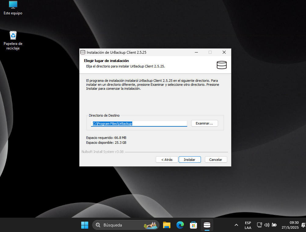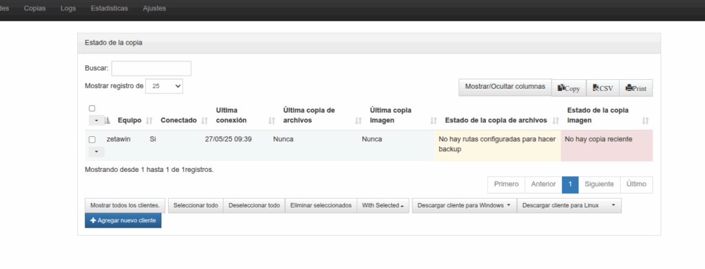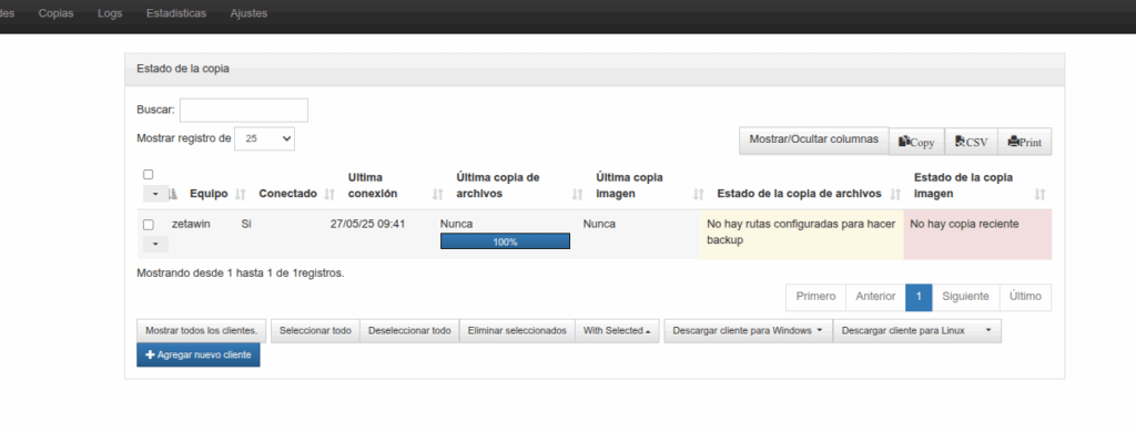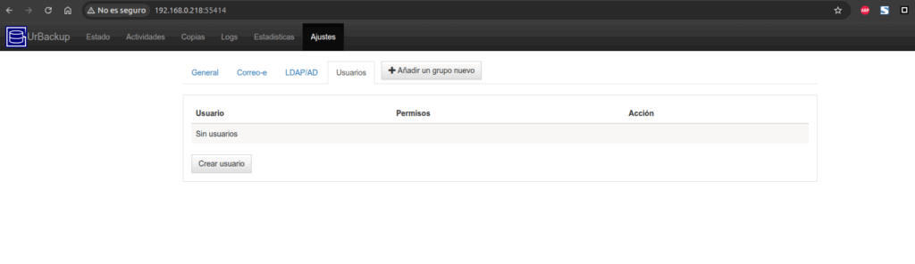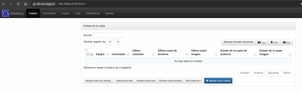 Ahora sabiendo la ip del servidor donde instalamos urbackup mas el puerto 55414 veremos: