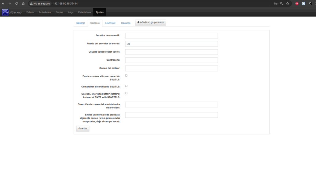Como todas las herramientas, urbackup tiene para enviar correos: