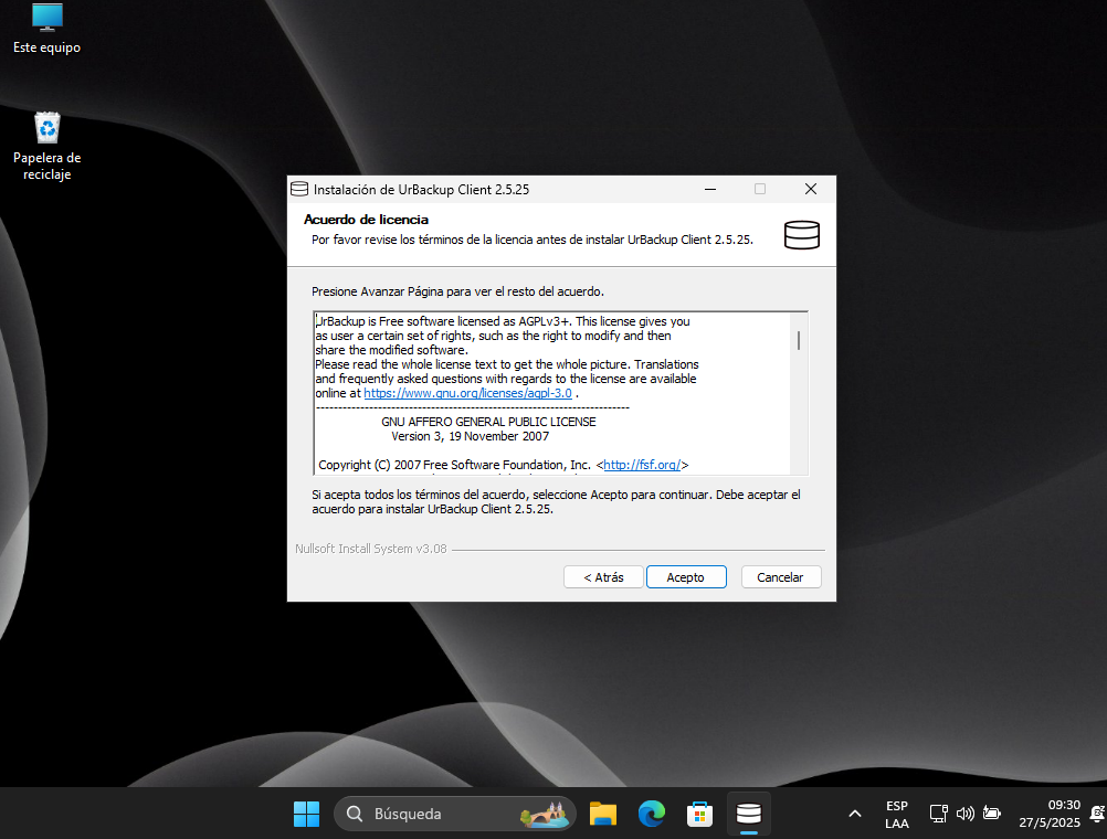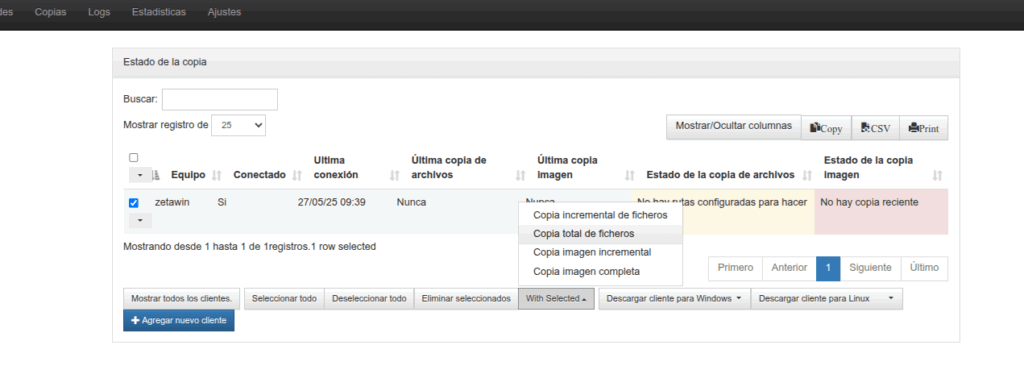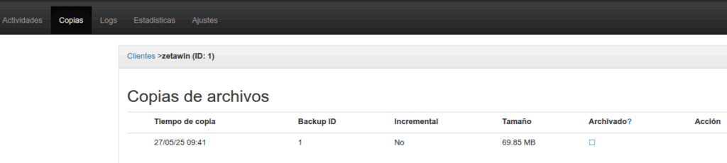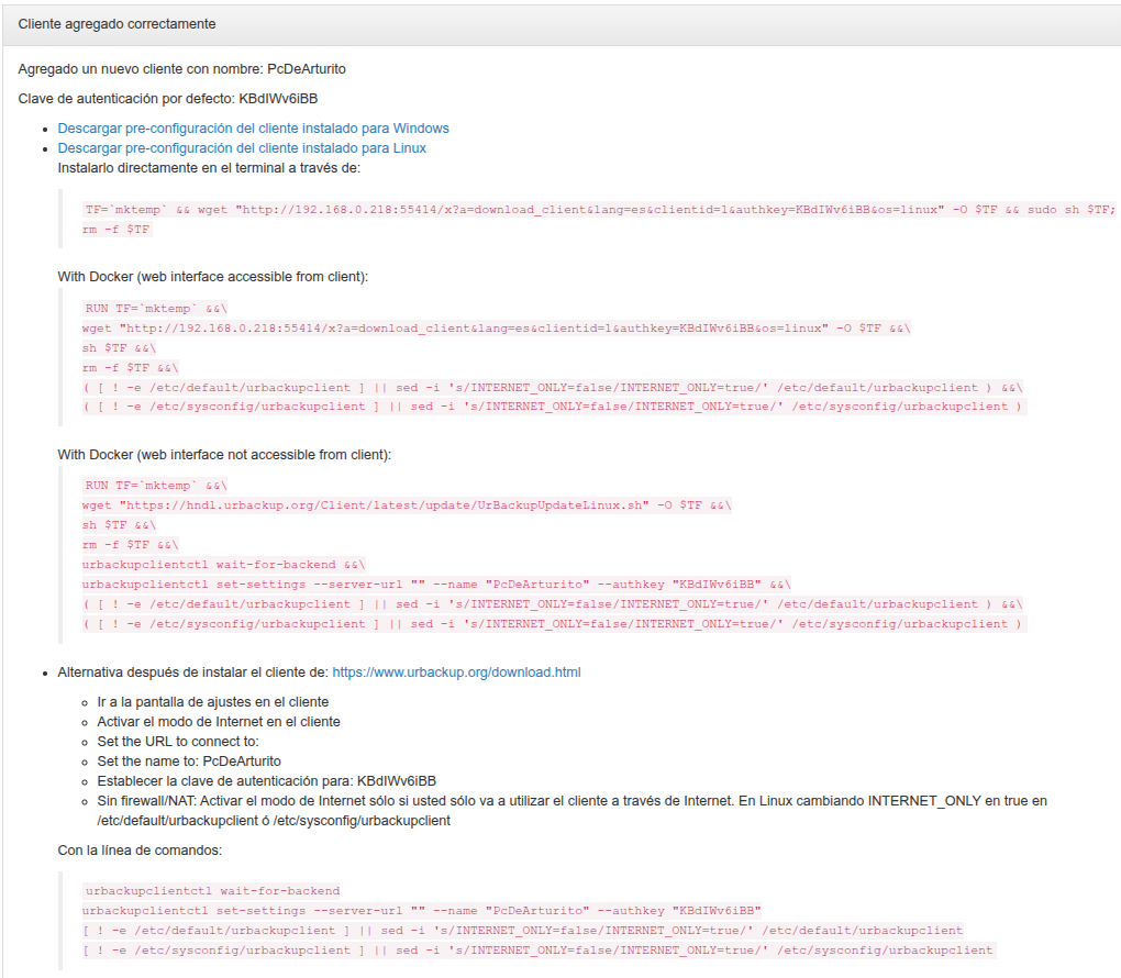 Ahora como generamos para arturito vamos a generar para zetawin. Tenemos la opcion de que urbackup es web entonces lo podes abrir dentro de la misma maquina que vas a configurar y te descargas el instalado: