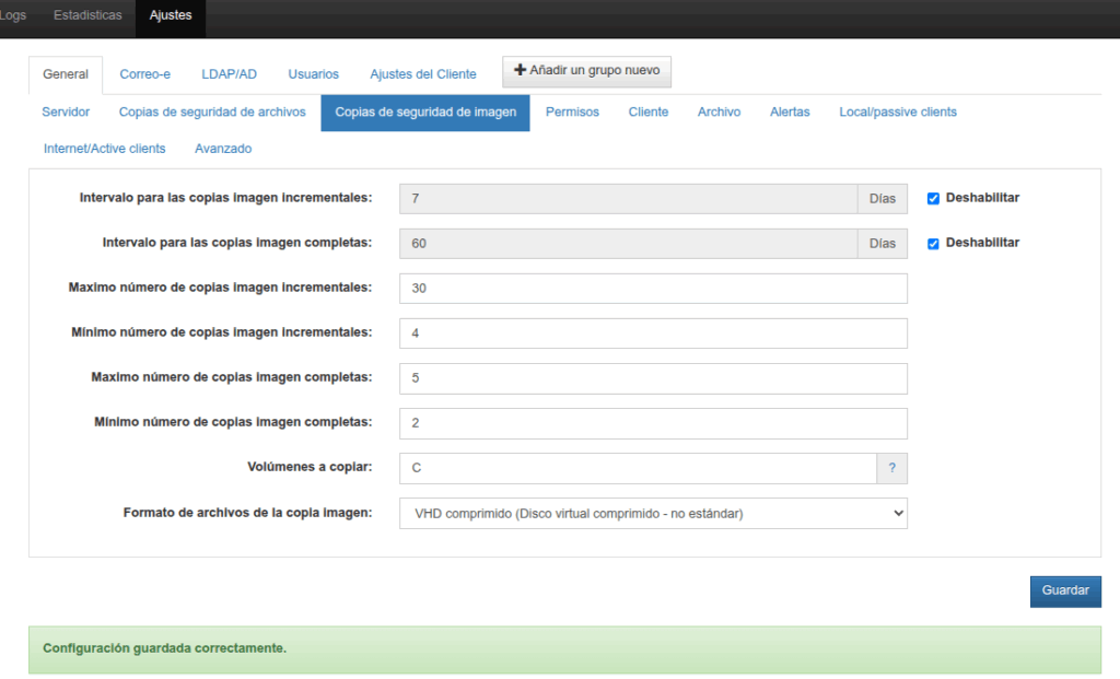 La copia del Tipo imagen: Crea exactamente una copia de los discos. Sino tenemos el espacio suficiente ademas de trasladar demasiados datos por la red puede terminar siendo caotico. Esta bueno saber que existe la posibilidad para alguna maquina cuya configuración sea «compleja» y tenerlo a mano estaria bueno por si se rompe.