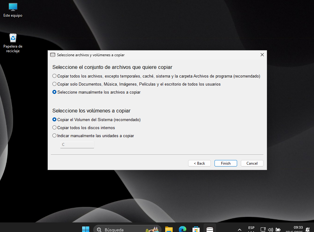 Antes que nada, recorda que si tenias en los ajustes que se cree una imagen del equipo SE VA A CREAR, por eso antes de darle terminar mira esto: