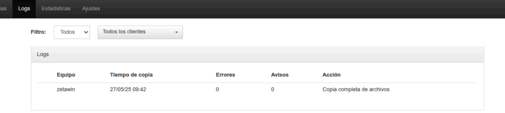 Si vamos a los logs y ponemos TODOS vamos a encotnrar el backup: