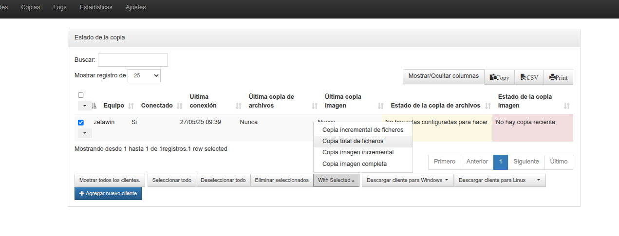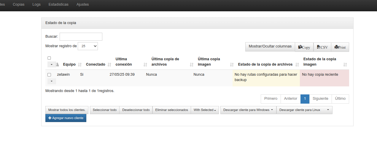 Ahora como generamos para arturito vamos a generar para zetawin. Tenemos la opcion de que urbackup es web entonces lo podes abrir dentro de la misma maquina que vas a configurar y te descargas el instalado: